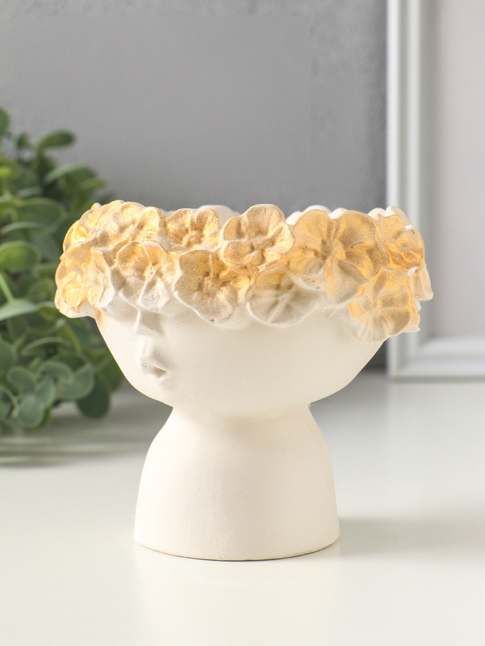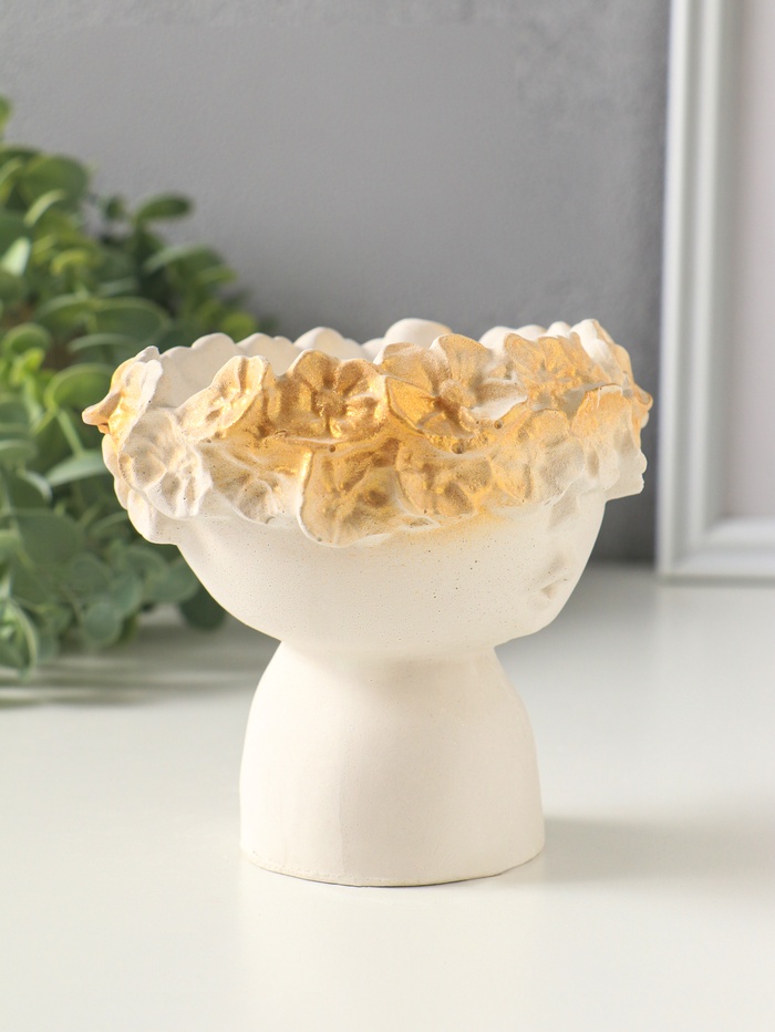 Подставка для мелочей «Девушка в цветах», 10×11 см, белая с позолотой