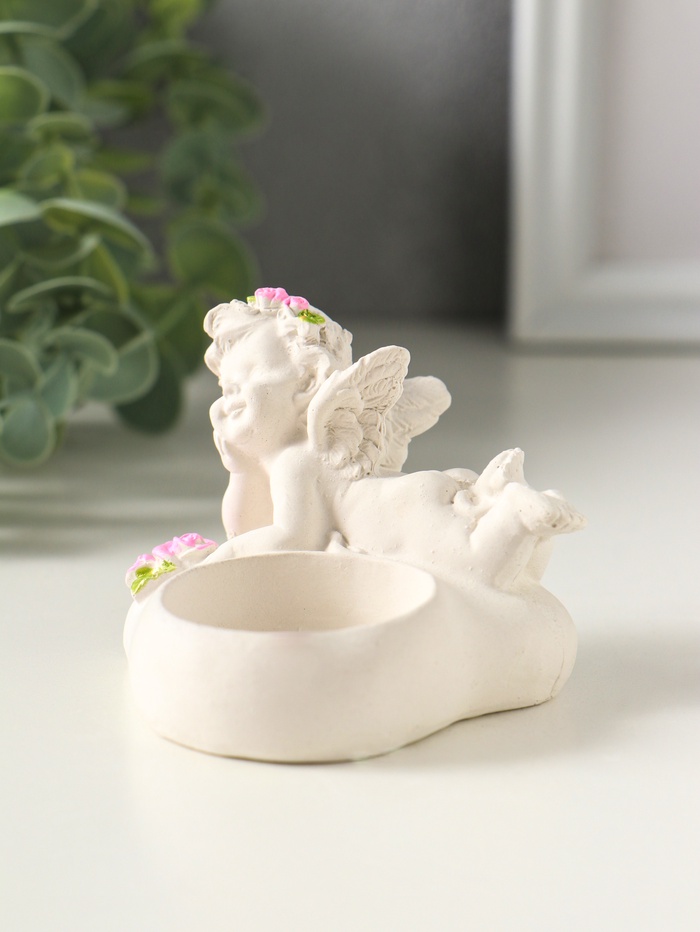 Подсвечник на 1 свечу «Ангел лежит на сердце», 7×8 см, белый