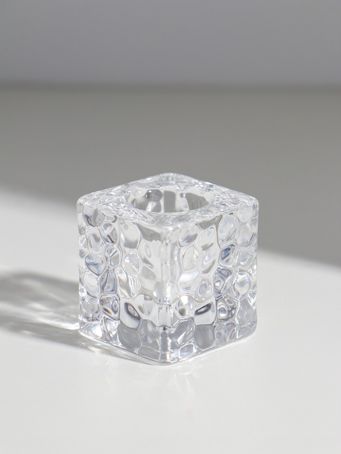 Подсвечник стекло на 1 свечу "Куб. Лёд" прозрачный d=2 см 4х4х4 см