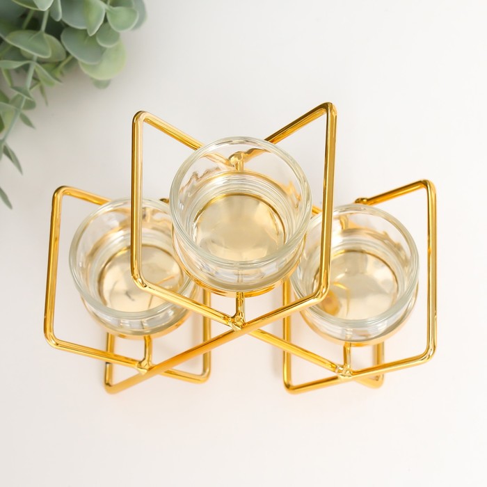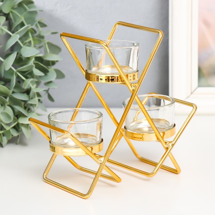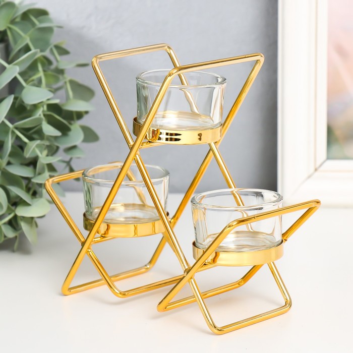 Подсвечник металл, стекло на 3 свечи "Пересечения" d-4,5 см золото 14х6х16 см