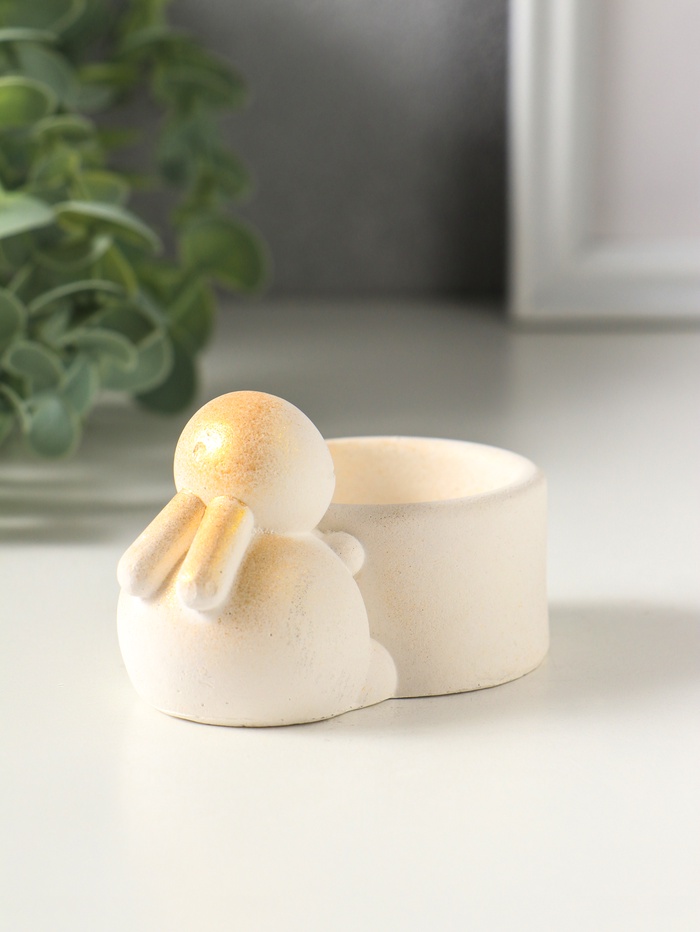 Подсвечник на 1 свечу «Заяц», 5×8 см, белый с золотым