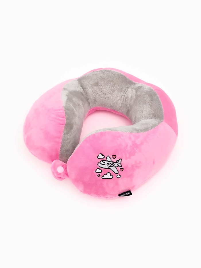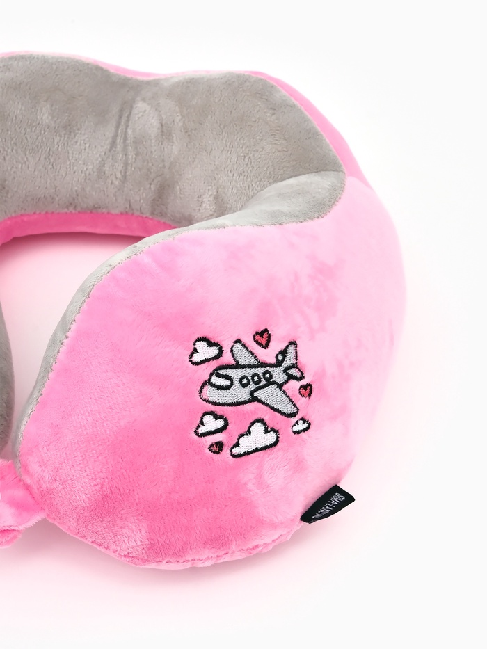 Подушка для путешествий бархатная формовая «Самолет», розовая