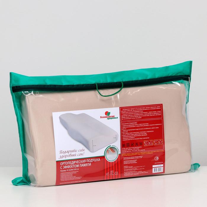 Подушка ортопедическая НТ-ПС-03, с эффектом памяти и выемкой под плечо, 61.5×34 см, валики 13/8 см