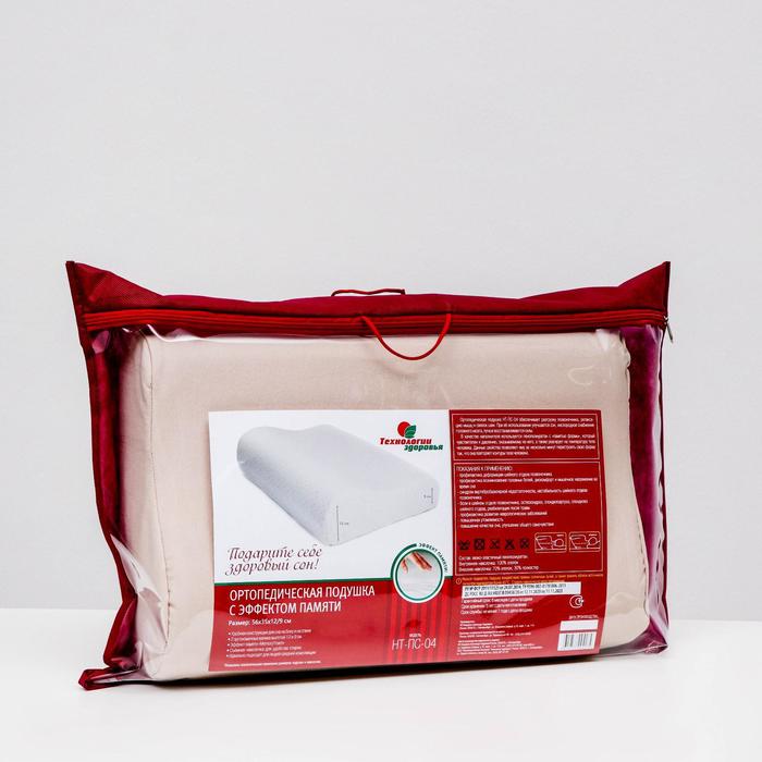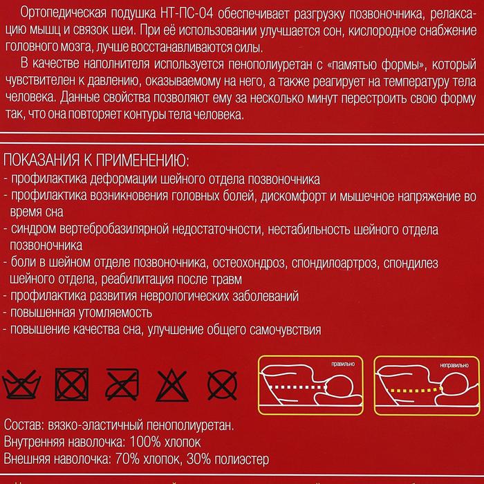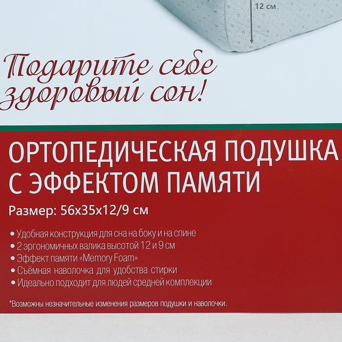 Подушка ортопедическая НТ-ПС-04, для взрослых, с эффектом памяти, размер 56×35×12/9 см