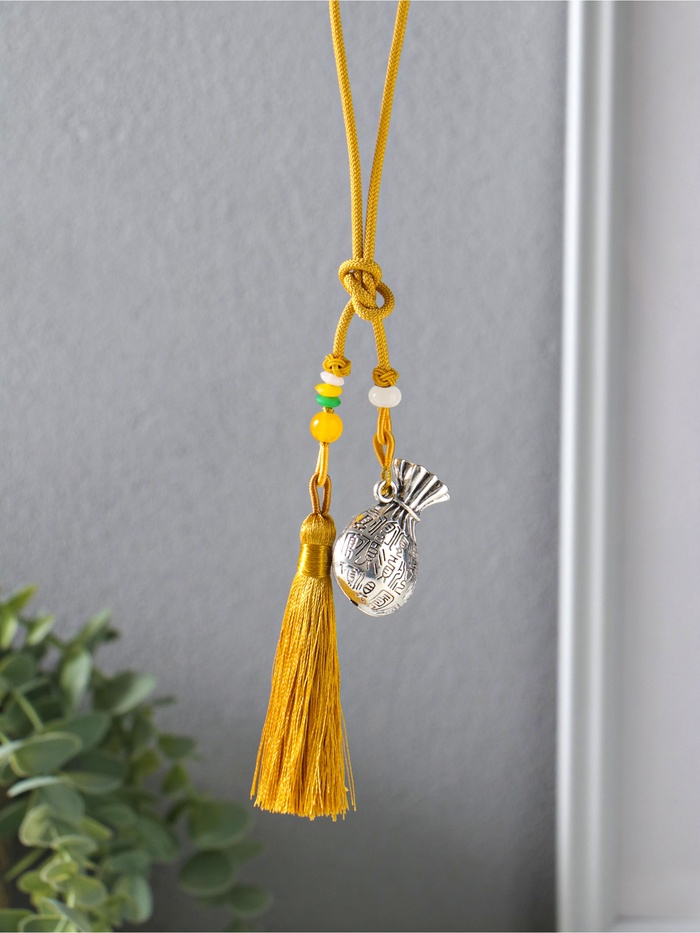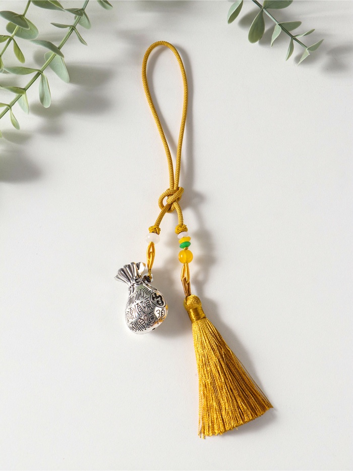Технические характеристики Подвеска металл, текстиль «Мешок с кисточкой», золотистый с серебром, 2×4.5×14 см