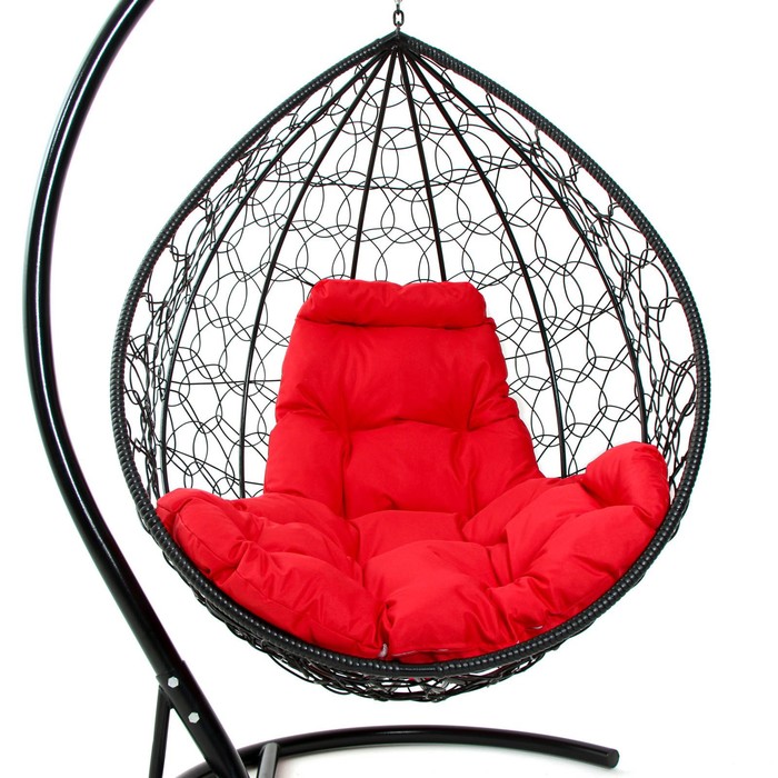 Кресло - кокон подвесное «Капля», 72×98×186 см, с искусственным ротангом, чёрное, с красной подушкой