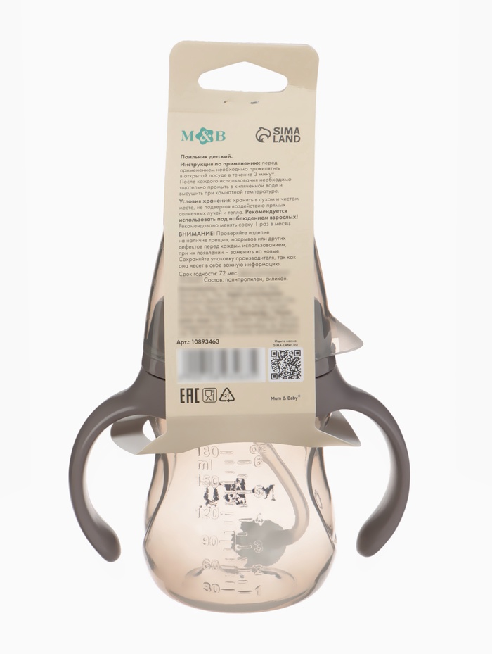 Технические характеристики Поильник детский с мягким носиком M&B., 180 мл.