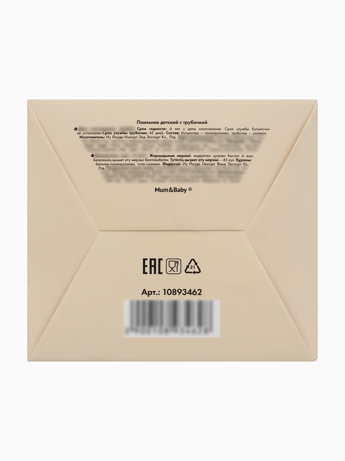 Технические характеристики Поильник детский непроливайка с трубочкой M&B, 300 мл.