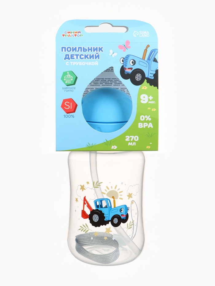 Технические характеристики Поильник-непроливайка с трубочкой, 270 мл, Синий трактор