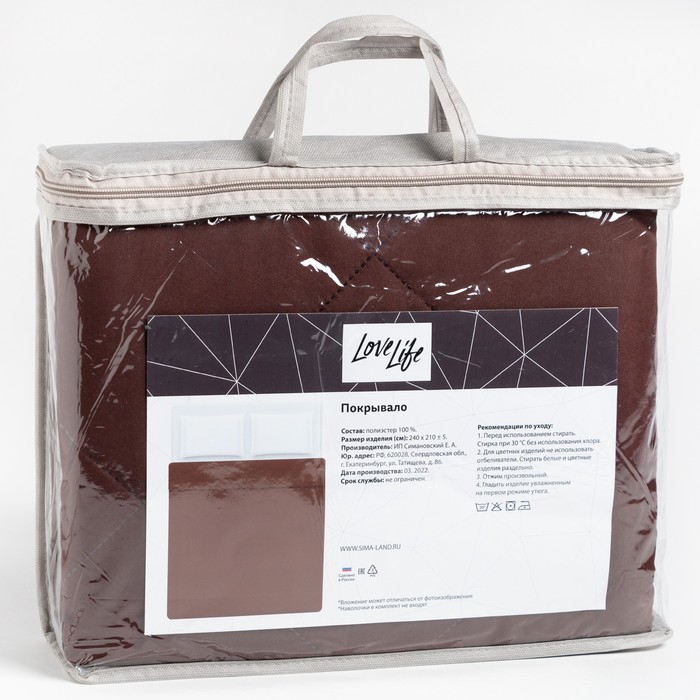 Технические характеристики Покрывало LoveLife 1,5 сп 150х210±5 см, цвет темно-коричневый, микрофайбер, 100% п/э