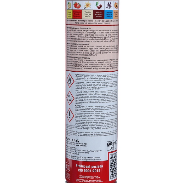 Технические характеристики Полироль пластика Plak atas, персик, аэрозоль, 600 мл