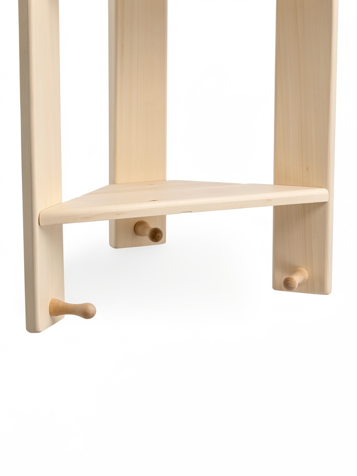 Технические характеристики Полка угловая 3 яруса, 3 крючка 74х40х16 см