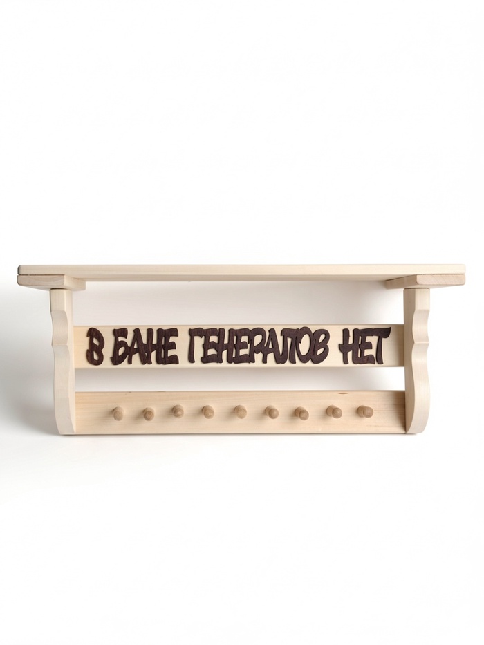 Полка - вешалка "В бане генералов нет" 9 крючков 64х27х23 см