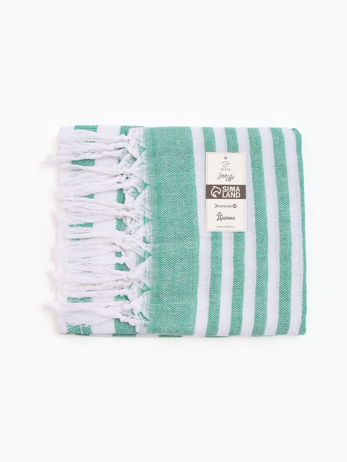 Полотенце пляжное пештемаль «Этель», 75×170 см, зелёное