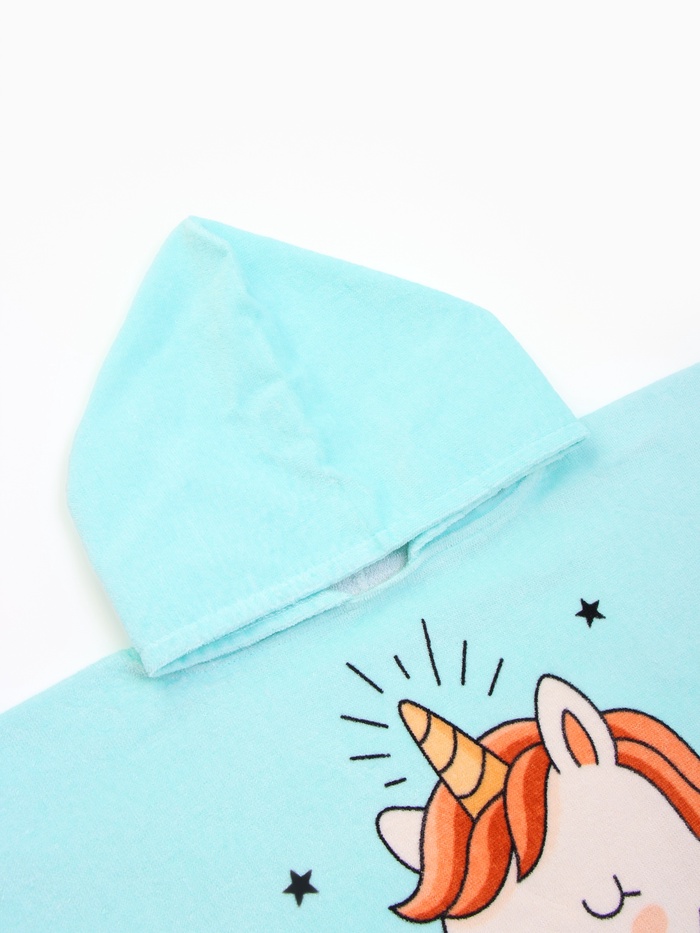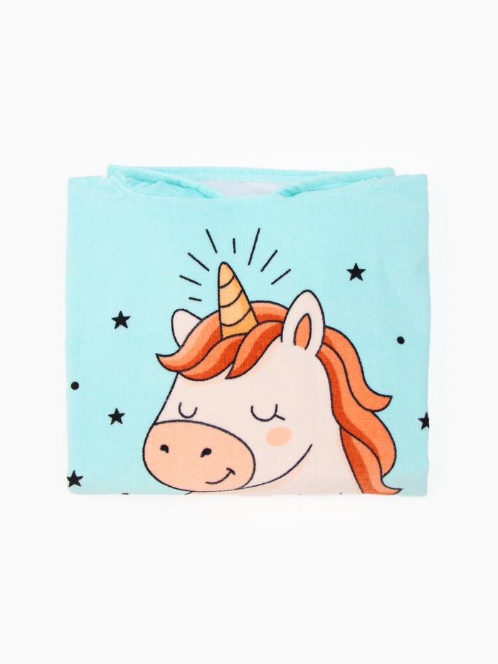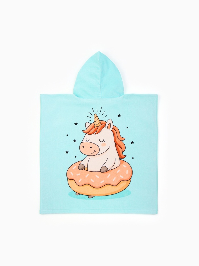 Полотенце - пончо детское LoveLife «Единорог», махра, 100% хлопок 300 г/м, 60×120 см, голубое