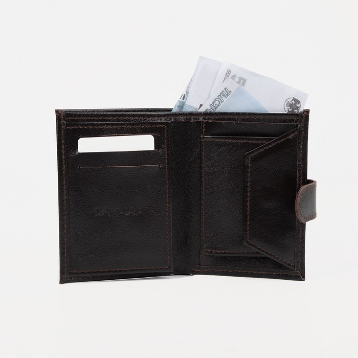 Портмоне мужское на кнопке, отдел для автодокументов, цвет коричневый