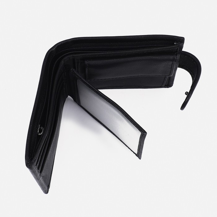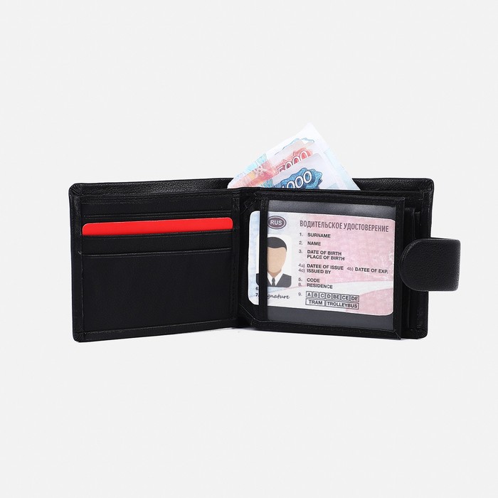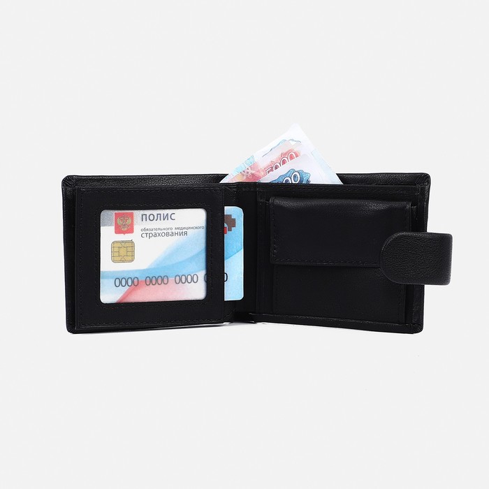 Портмоне на кнопке, отдел для купюр, для карт, для монет, цвет чёрный