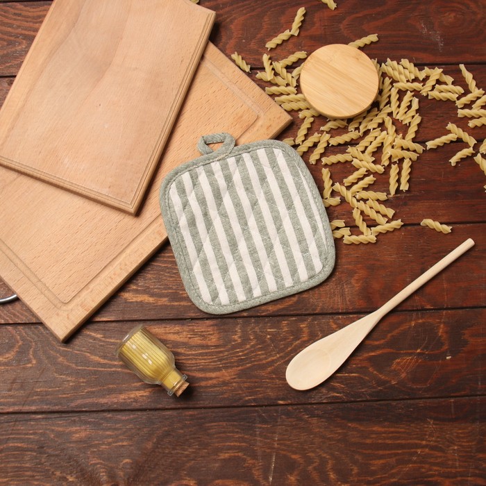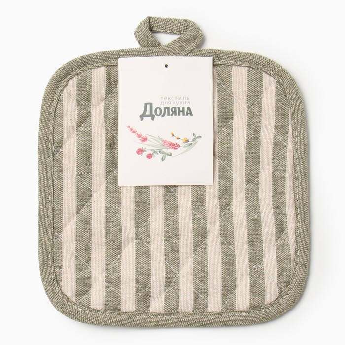 Прихватка «Доляна. Полоса», зелёная, 17×17 см, 50% п/э, 50% хлопок