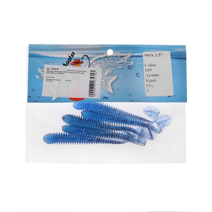 Технические характеристики Приманка силиконовая Master Twist STICK, 88 мм, цвет 039 светло-синий, 5 шт.