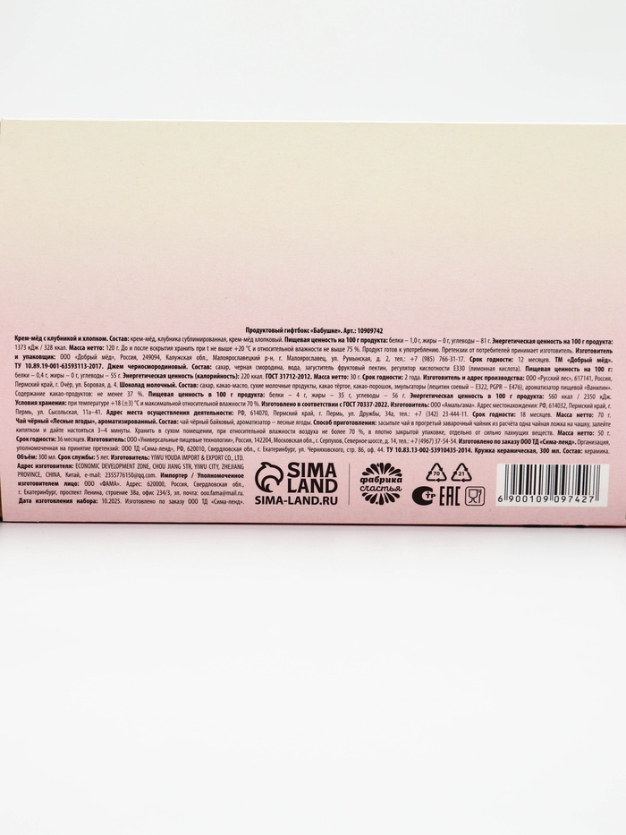 Технические характеристики Продуктовый гифтбокс "Бабушке" под МП