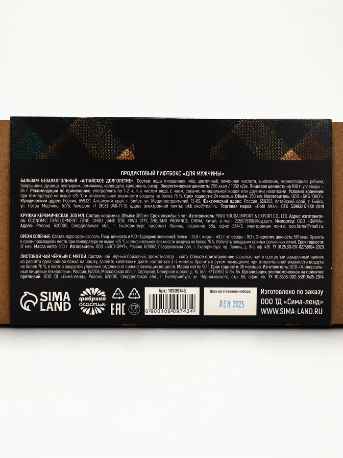 Технические характеристики Продуктовый гифтбокс "Для мужчины" под МП