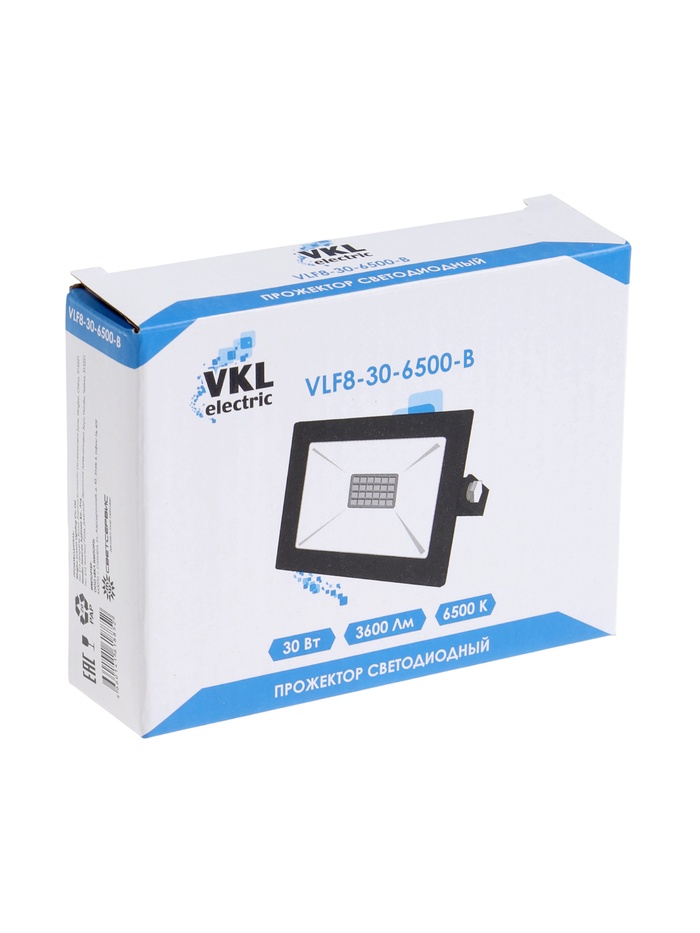 Прожектор светодиодный VKL Electric, 30 Вт, 3600 лм, 6500К, IP65, 220 В чёрный, свечение холодное белое