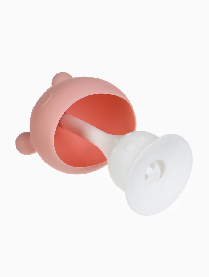 - Рельефная поверхность бережно массирует дёсны, облегчая боль при прорезывании зубов и стимулируя тактильное восприятие.