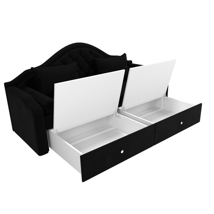 Прямой детский диван «Сойер», механизм выкатной, микровельвет, цвет чёрный