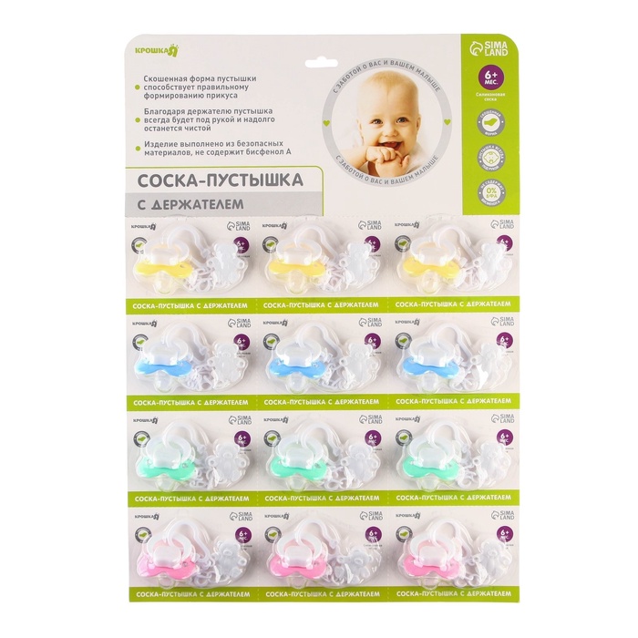 Технические характеристики Пустышка ортодонтическая, с держателем, +6мес., МИКС