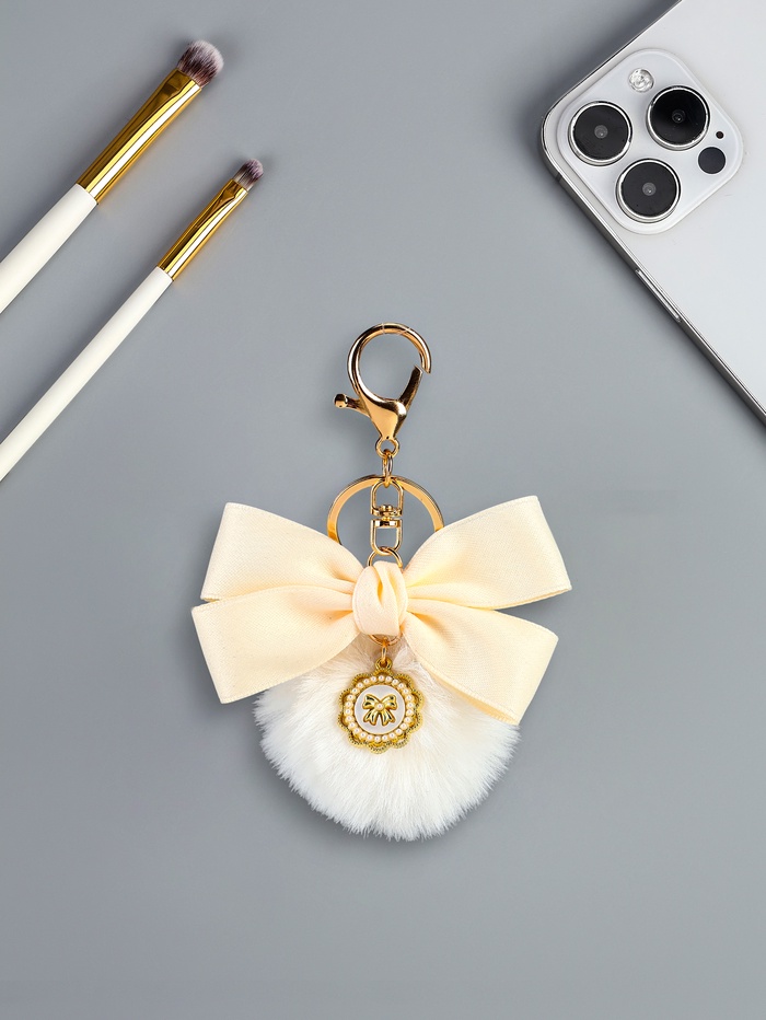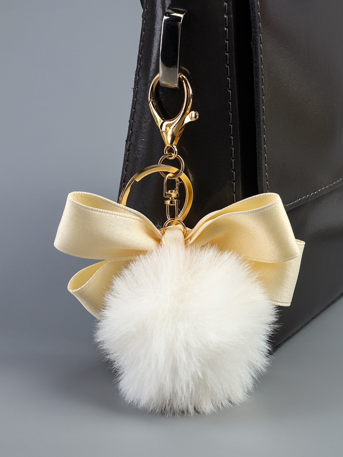 Пушистик на кольце "Бант с подвеской" белый 12х5х5 см