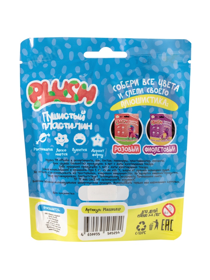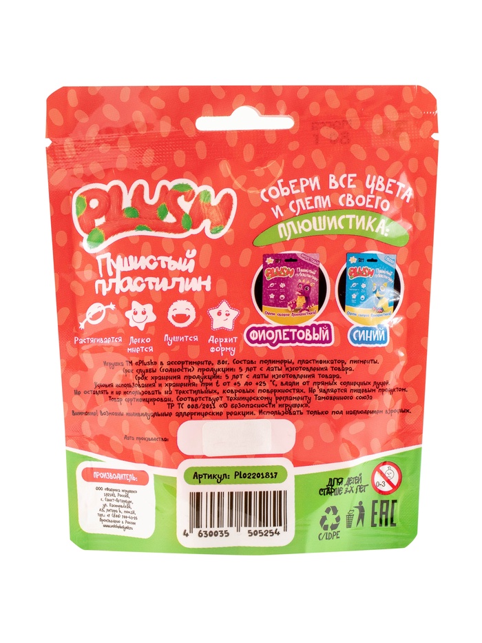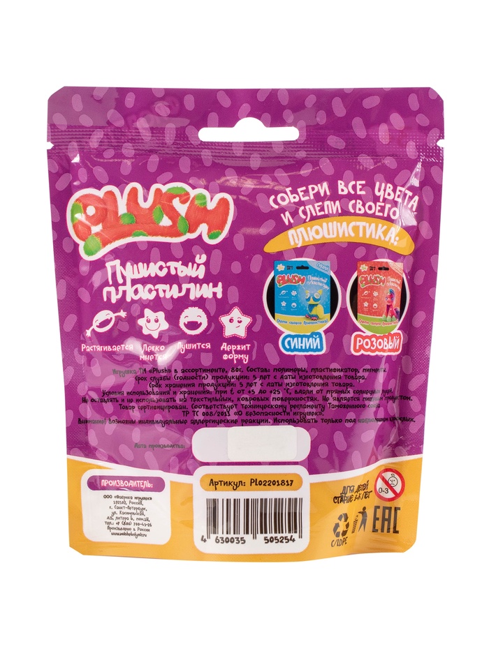 Пушистый пластилин "PLUSH", в ассортимете, 80г.