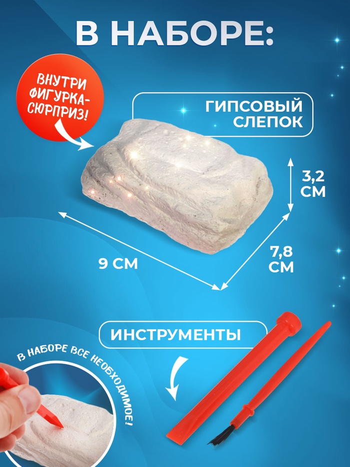 Технические характеристики Раскопки «Новогодняя лошадка», набор: гипсовый слепок, долото, кисточка