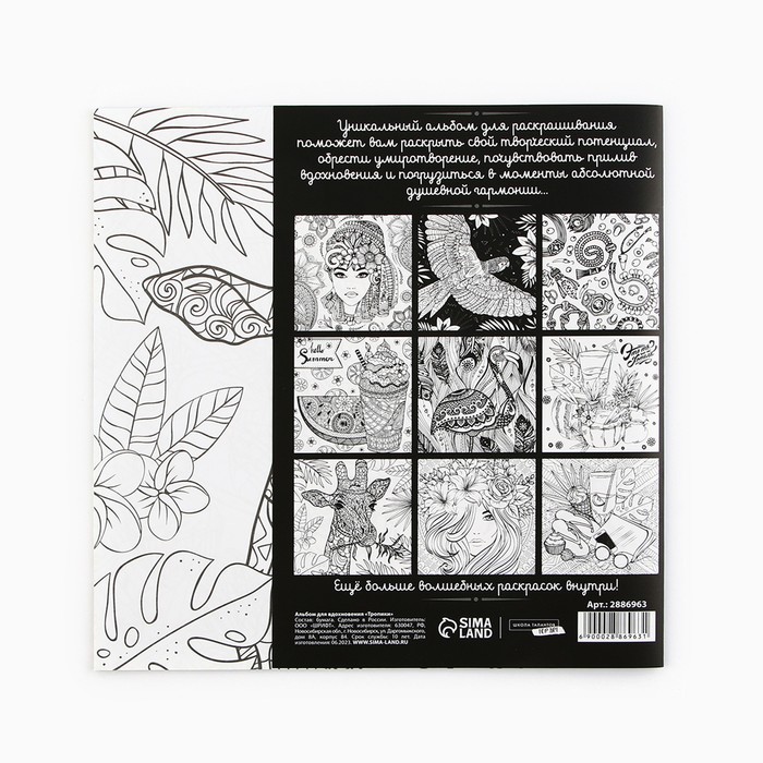 Раскраска - антистресс, альбом «Тропики», 20 стр.