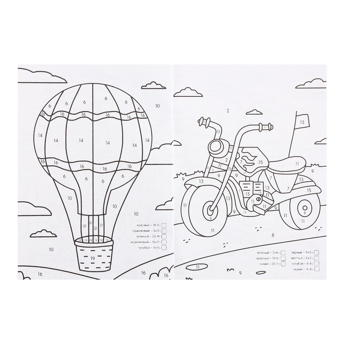 Обучающая раскраска «Для мальчиков» сочетает рисование с решением примеров. Ребёнок раскрашивает картинки, подбирая цвета по результатам вычислений — такой подход превращает изучение цифр в увлекательную игру.