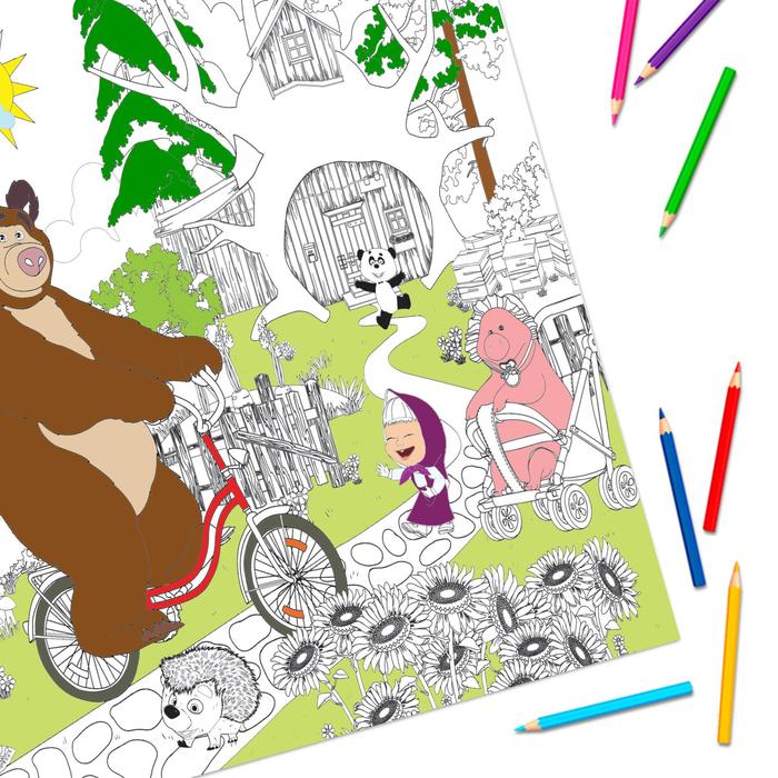 Раскраска-гигант «В гостях у Миши», 84 × 59 см, Маша и Медведь