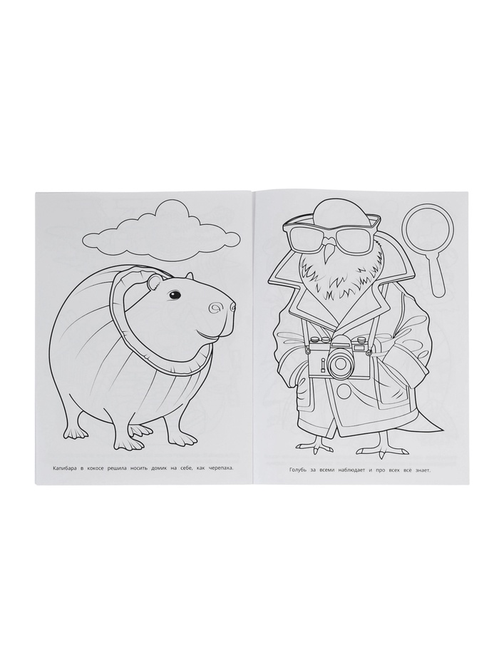 - 16 страниц с тщательно прорисованными картинками, которые легко раскрашивать благодаря чётким контурам.
