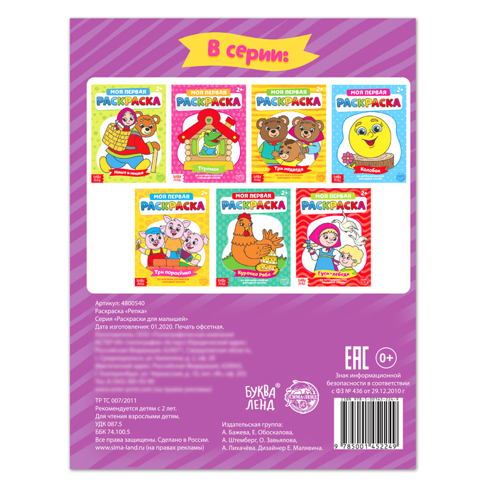 Технические характеристики Раскраска «Репка», 16 стр.