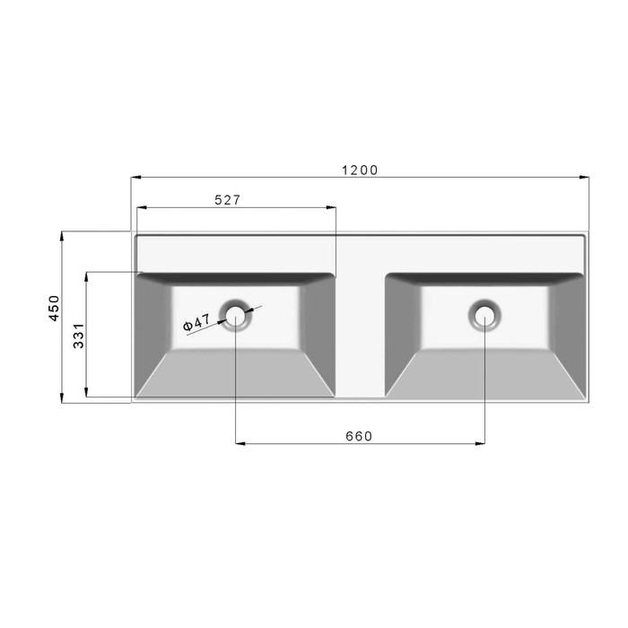 Раковина полувстраиваемая двойная Uperwood Classic 120 см, прямоугольная