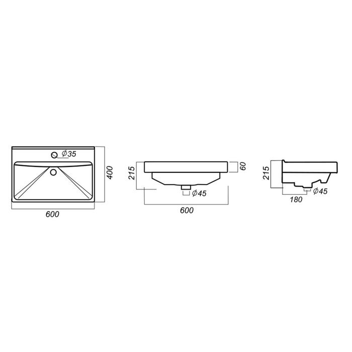 Технические характеристики Раковина SANITA LUXE «Fest 60» мебельный, белый