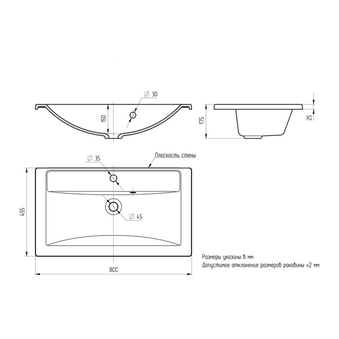 | Форма раковины | Прямоугольная |