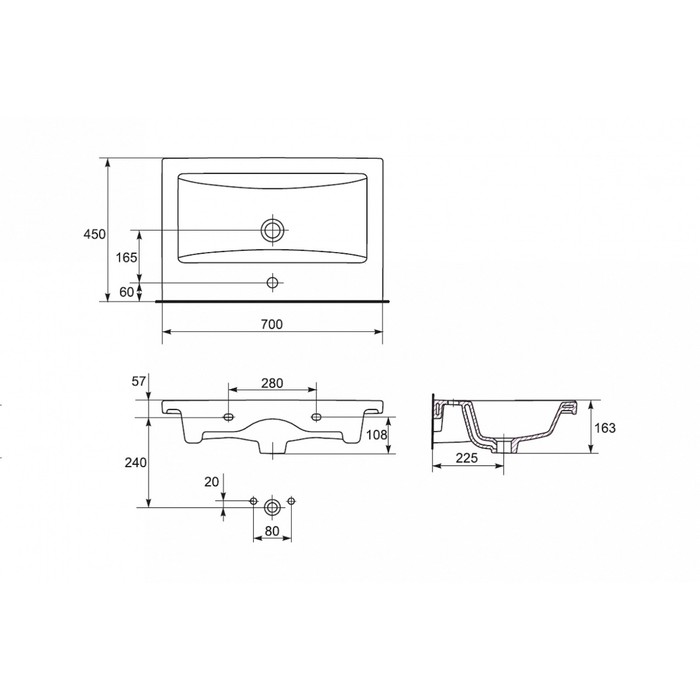 Технические характеристики Раковина встраиваемая Cersanit COMO 70, с 1 отверстием под смеситель, цвет белый