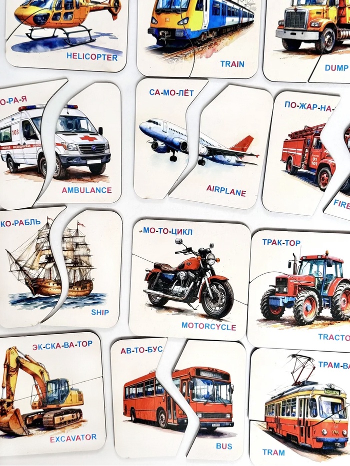 Развивающая игра "Картинки-половинки. Транспорт", 15 карточек РИ - 022