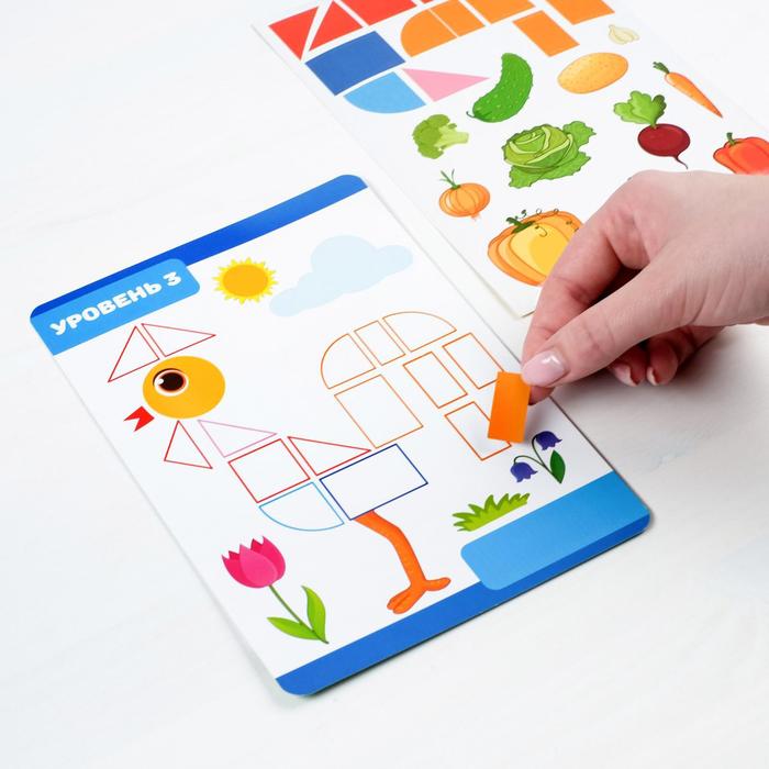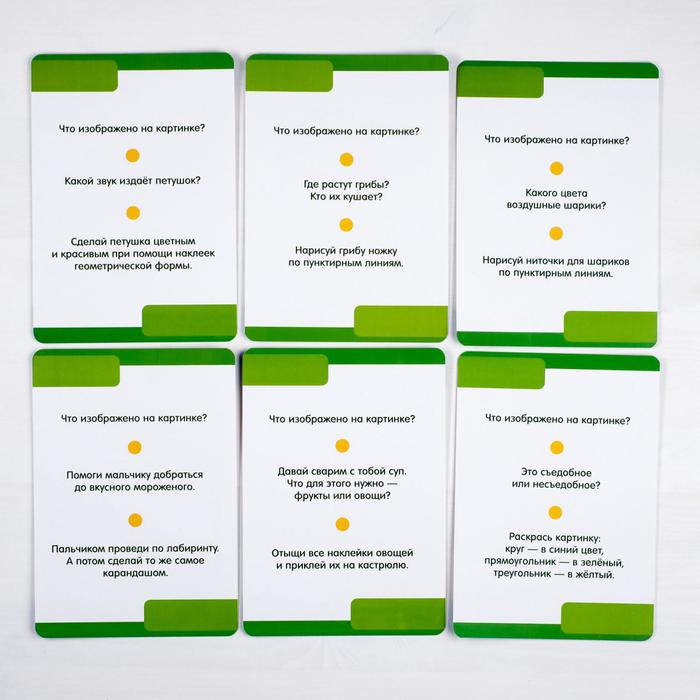 Также в игре есть карточки, в которых нужно вырезать. Ребёнок должен сделать это сам, но под вашим присмотром. А ещё в комплекте есть лист с наклейками, они пригодятся для некоторых заданий.