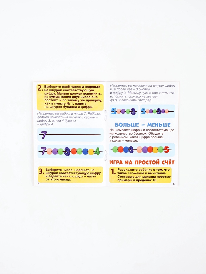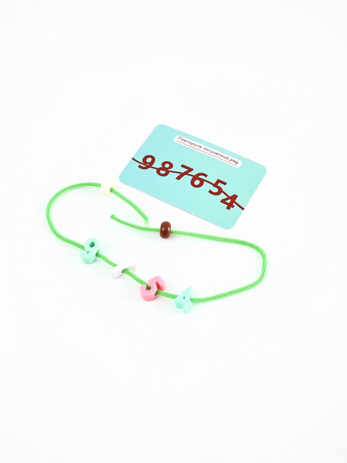 Игрушка помогает ребёнку освоить цифры и счёт, развивать мелкую моторику, концентрацию внимания и координацию рук и глаз через активное участие — продевание шнурка через элементы с цифрами и бусинами.