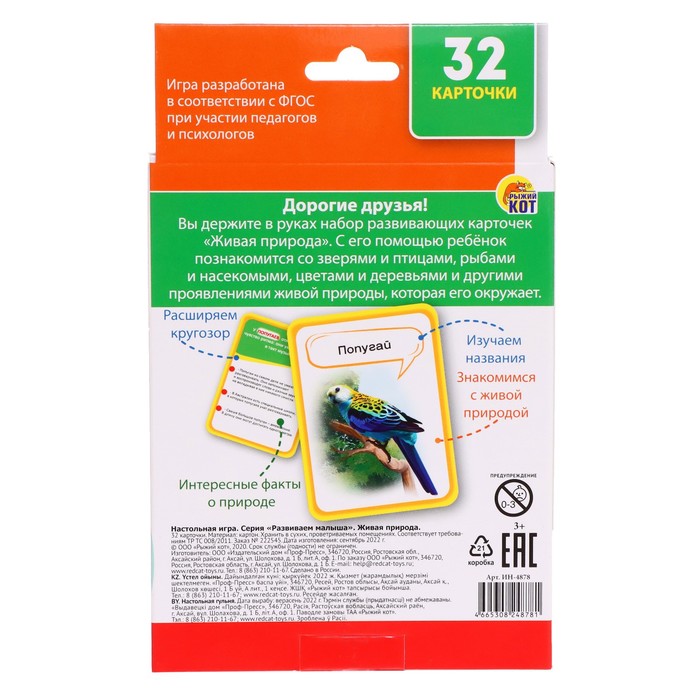 Технические характеристики Развивающие карточки «Живая природа»
