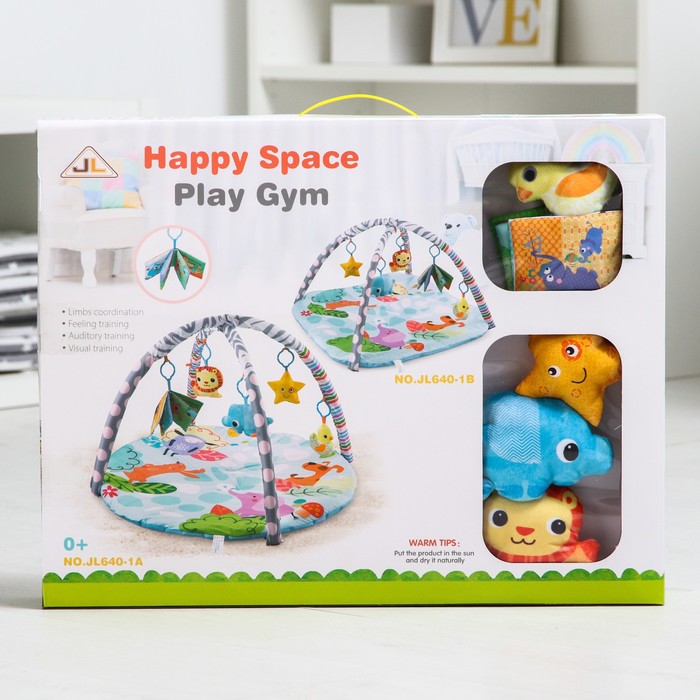 Развивающий коврик с дугами «Слоник», 4 игрушки, книжка, размер 82×82 см