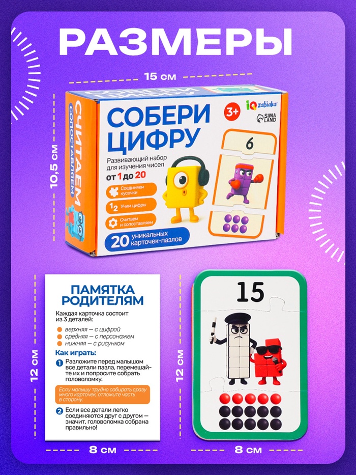 Технические характеристики Развивающий набор для изучения чисел "Собери цифру"