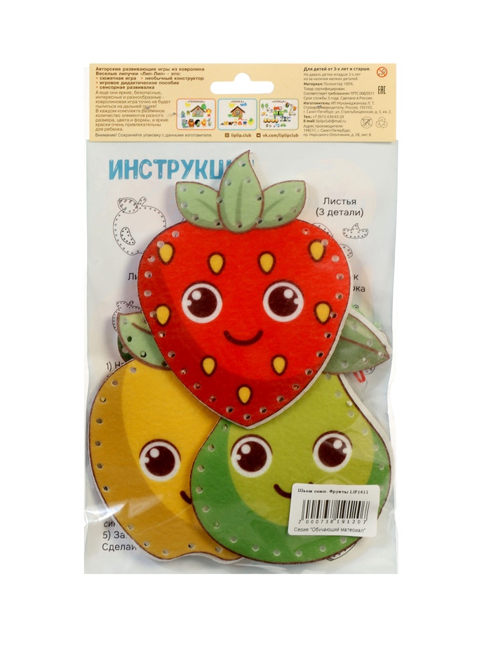 Технические характеристики Развивающий набор "Шьем Сами. Фрукты" LIP1411