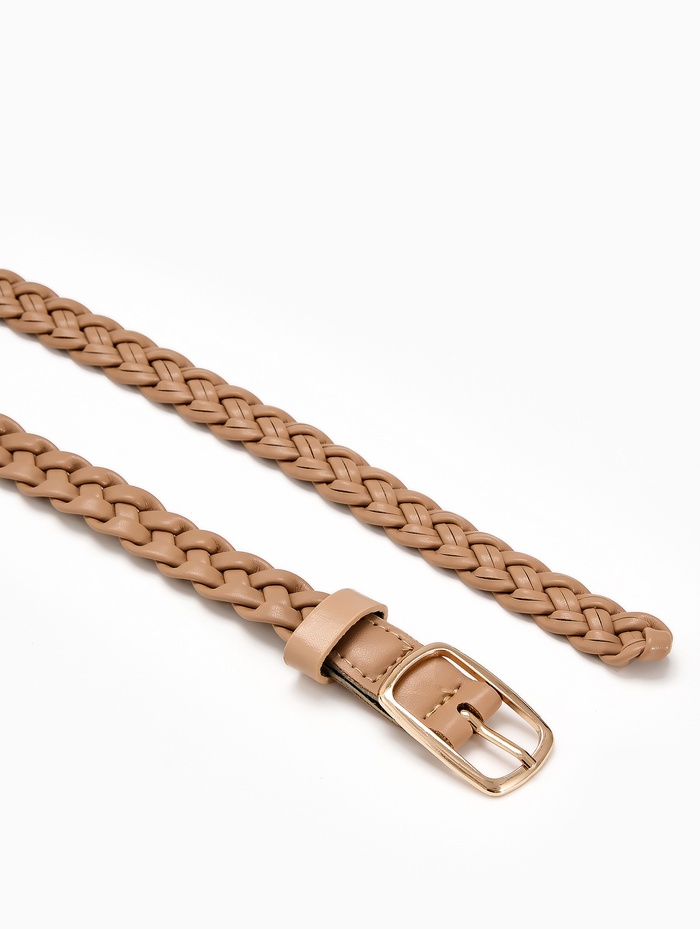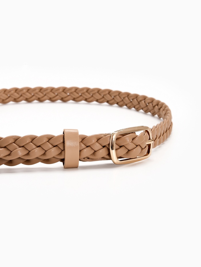 Наденьте этот ремень с джинсами, платьем или брюками — он мягко подчеркнёт талию и добавит нотку утончённости. Золотая пряжка становится ярким акцентом, который не перегружает образ, а его нейтральный цвет делает аксессуар многозадачным спутником в гардеробе.
