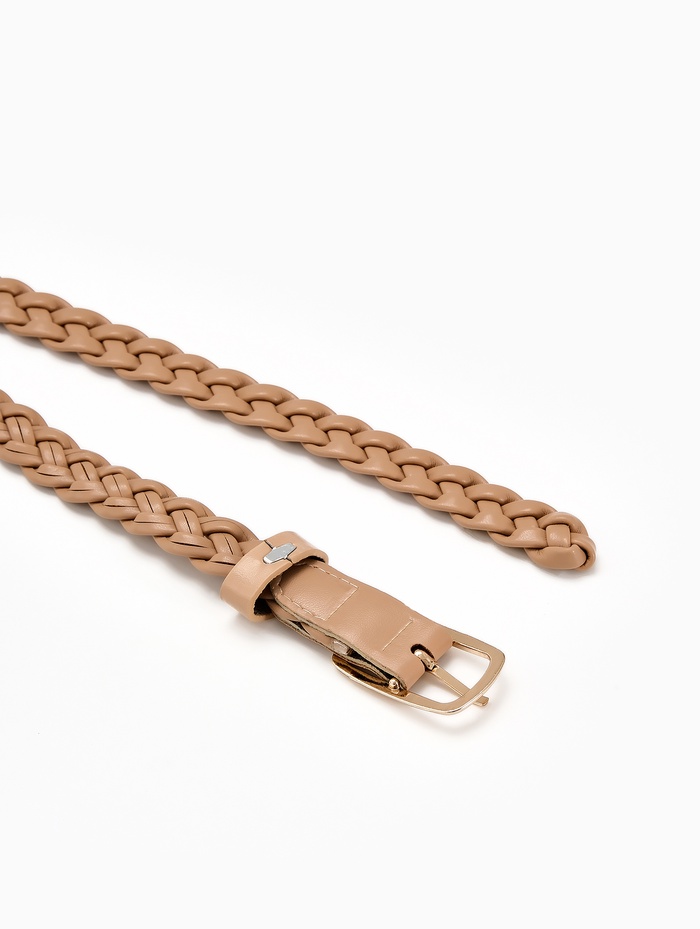 Ремень женский плетёный, 110×1.8 см, пряжка металл, золотистая, бежевый